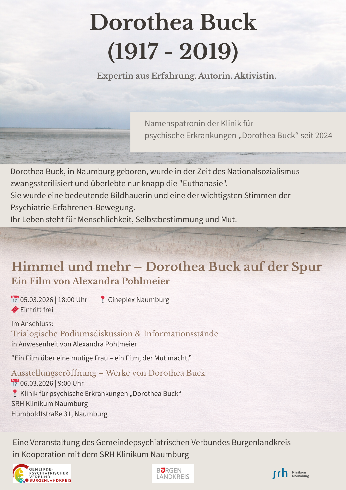 Dorothea Buck, in Naumburg geboren und später an Schizophrenie erkrankt, überlebte nur knapp die Euthanasie. In ihren Werken verarbeitet sie viele erlebte Situationen auf künstlerische Weise.